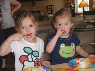 Since we had so much cake on Friday and Saturday, we saved Bia's monkey cake until Sunday and invited our neighbors over to share.